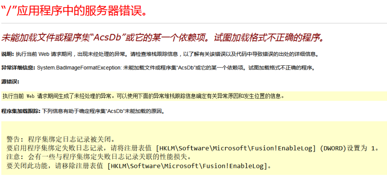 # B/S升级后提示“未能加载文件或程序集"AcsDb”或它的某一个依赖项...”