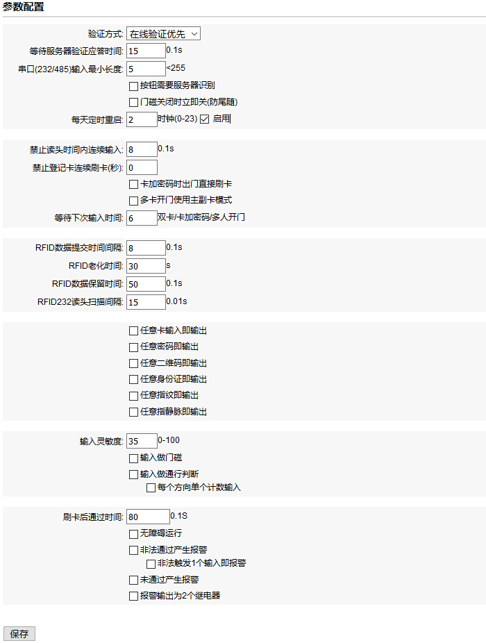 - 仅在线验证: 刷卡后,发给服务器验证,不保存记录。